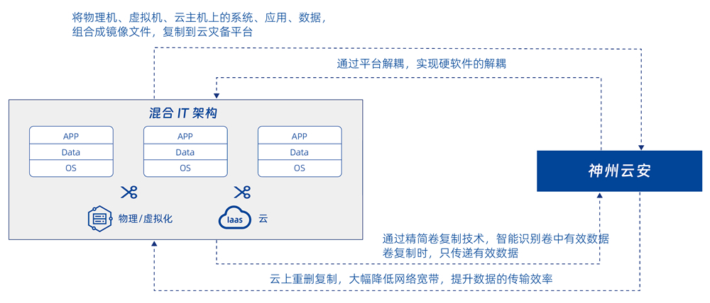 集備份、容災功能為一體的云災備平臺產(chǎn)品,將需要災備保護的操作系統(tǒng)、應用、數(shù)據(jù)打包成一個云鏡像文件,靈活快速的復制到云災備平臺,為用戶的混合 IT 環(huán)境提供統(tǒng)一的災備保護。